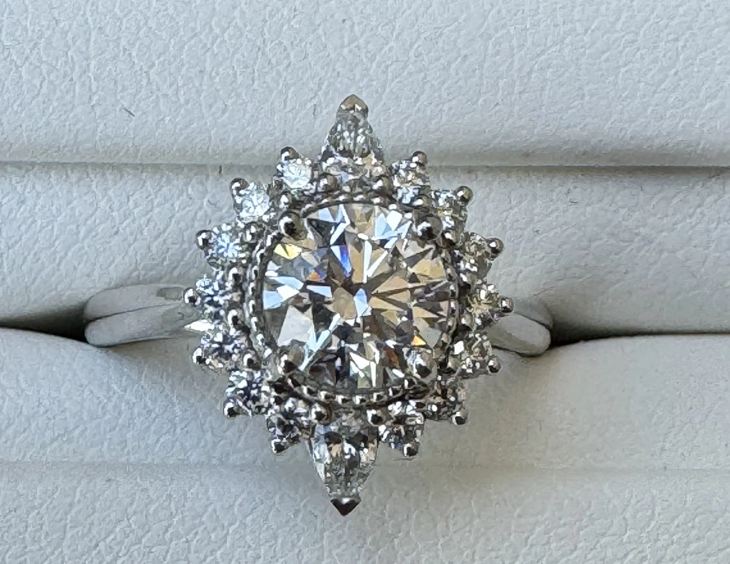 1 ctw Center Diamond Engagement Ring encircled by 0.4 ctw Melee Diamonds